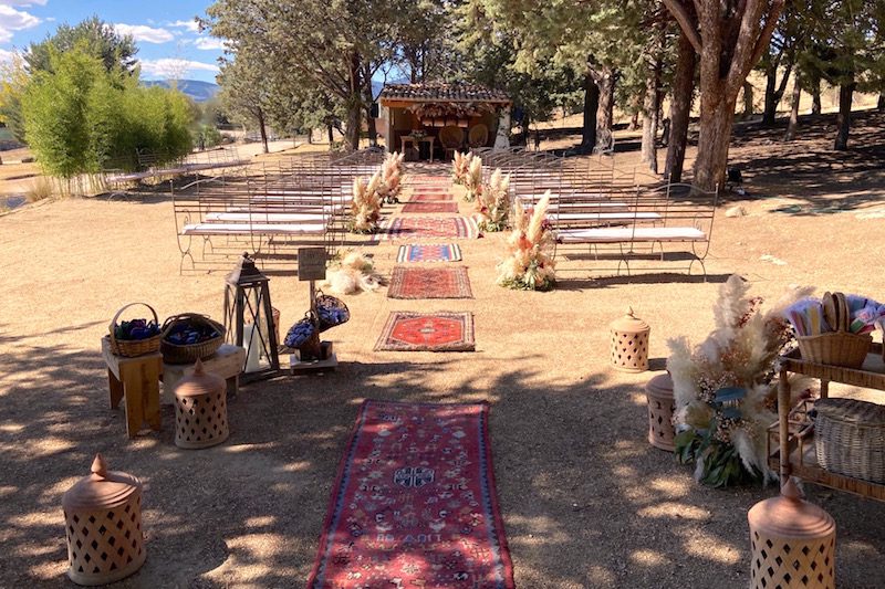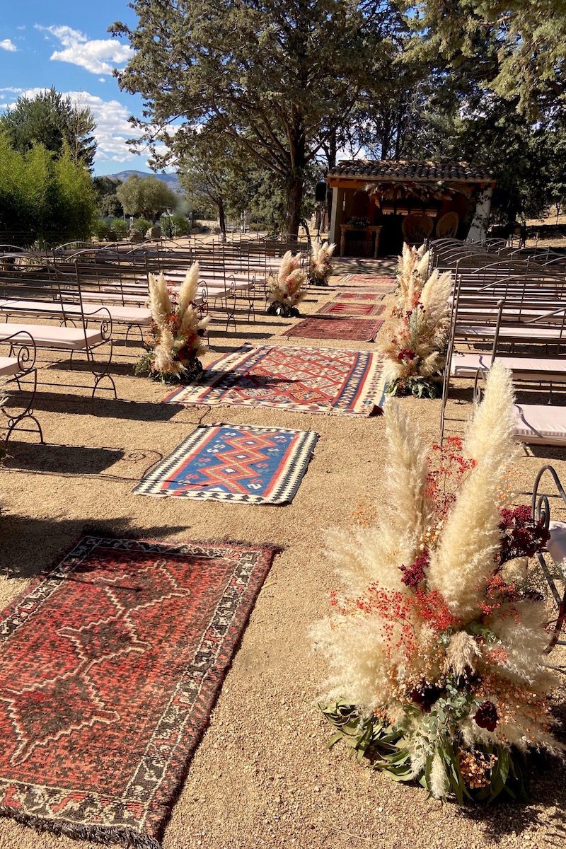 Esta alfombra que mostramos a continuación es ideal para parejas de novios que buscan decorar su boda con un estilo boho.