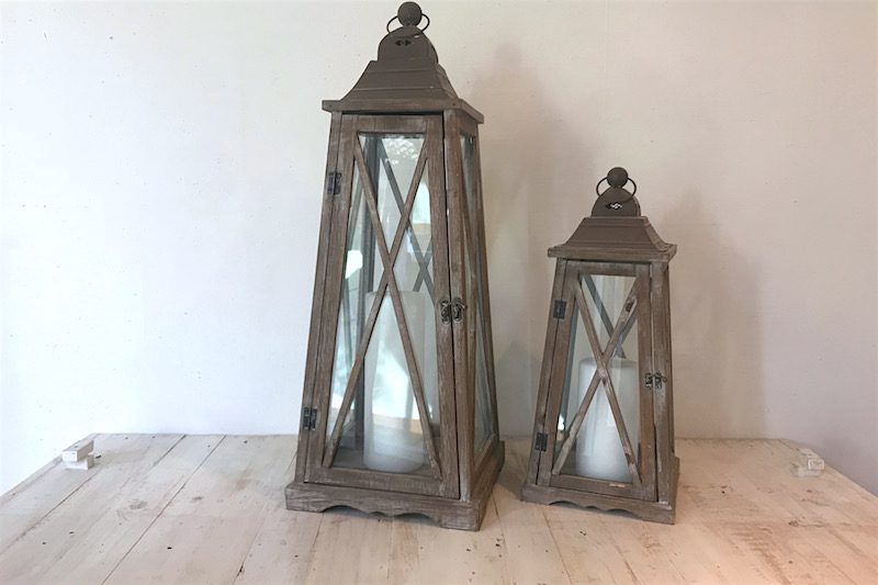 • Pareja de faroles rústicos: Estos faroles son únicos, sólo disponemos de una unidad de cada modelo. Para colocar en su interior una vela grande de cera natural.