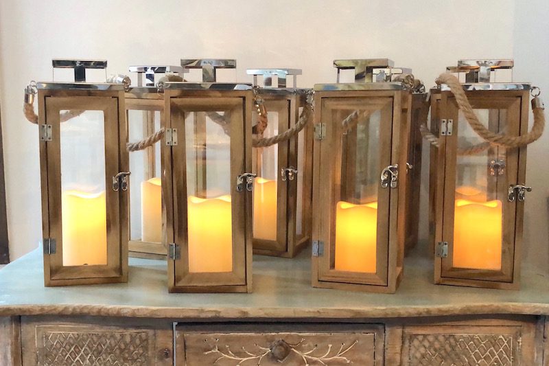 • Faroles con vela led: Ideales para colocar en espacios donde estén prohibidas las velas naturales. Tiene una luz cálida que crea una atmósfera agradable allá donde los ubiques. Funcionan con pila. (Disponemos de 10 unidades.)