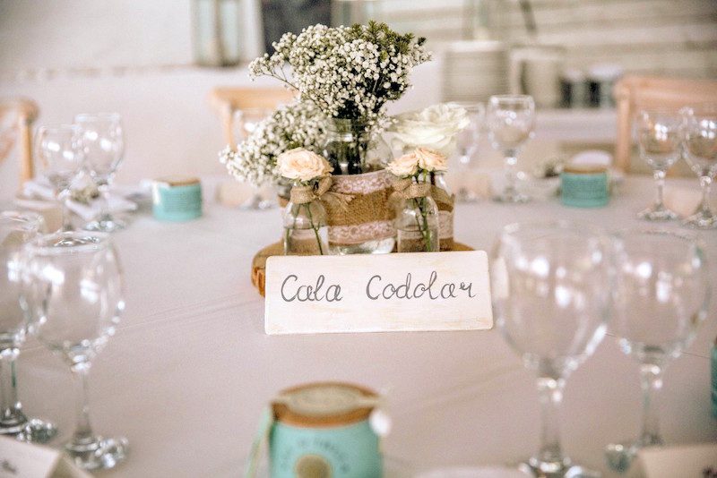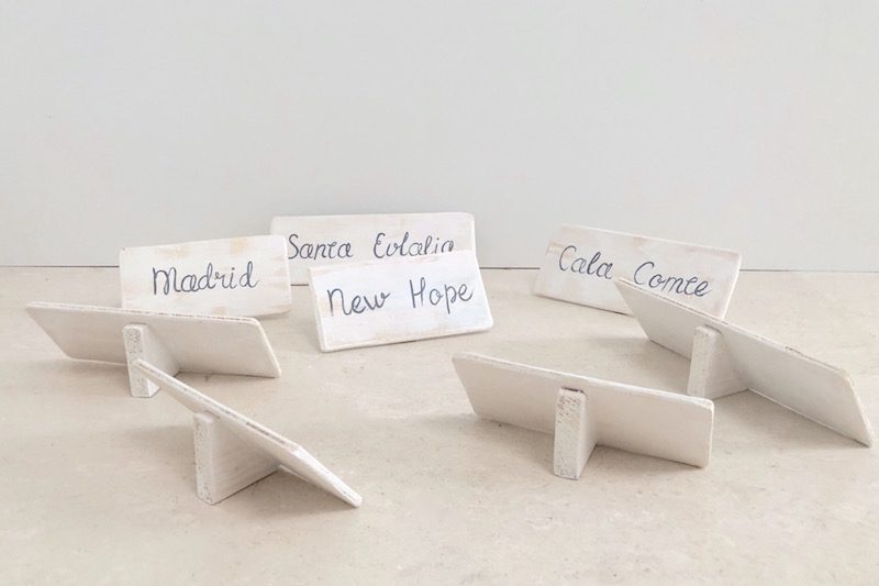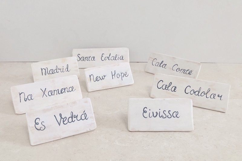 Unos meseros entrañables con la letra pintada a mano y después serán un bonito recuerdo del día de tu boda o evento.