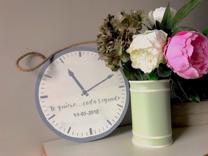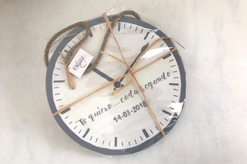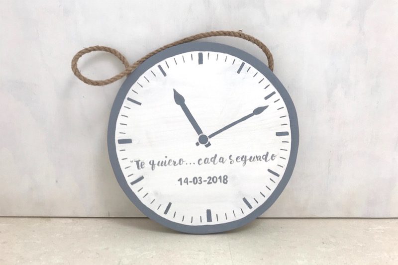 En nuestro taller elaboramos regalos personalizados 100% artesanales, este cartel en forma de reloj es un ejemplo de ello.